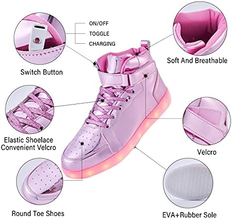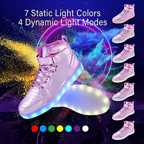 When you put on this high top LED Sneakers ,your feet can have 7 single colors glow and 4 flashing models,light up your feet and be the brightest star in the dark. High top LED shoes adopts durable PU Leather Upper material,cotton lining fabric,and non-slip rubber outsole can keep your feet comfortable for long walks. Special Design : Switch Button hiddening the strap in the lacing part,it's also a charging switch.Easy to control the light on and off, press it to switch on. With each press, it changes to another light mode.,at the same time the hidden button will not affect your comfortable wearing experience. USB Rechargeable: Each pair of shoes contains a cable. It is easy to recharge the shoes with USB cable, you can charge any place where you can connect the USB interface. This fashion LED shoes can be a caual sneaker,also can be a hip-hop shoes in the night. The unisex light up sneakers is a ideal gift, which are perfect for your families, friends and colleagues and you can wear it to the Night Club, Birthday/ Valentine's Day/ Halloween/ Thanksgiving Day/ Christmas present, Evening Riding and so on.Just choose a pair of shining shoes for your friends, lovers and kids soon. #67,087 in Clothing, Shoes & Jewelry ( ) #301 in