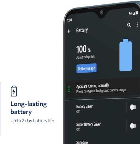 This device works with all GSM carriers including, but not limited to: AT&T, Boost, Cricket, H2O Wireless, Metro, Net10, Simple Mobile, T-Mobile, Tracfone. This product will not work with Verizon. Please confirm compatibility and network availability with your preferred carrier. 5G support not offered with all carriers. 5G speed with Qualcomm Snapdragon 480 5G Mobile Platform. 48MP camera setup with AI and video selfie stabilization 2 day battery life with 18W fast charging support Android 11; upgradeable to Android 13 with monthly security updates