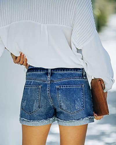 Casual summer stretchy short jeans denim pants:Zipper Fly, high waist,folded hemline, ripped, washed,5 pockets,stretchy,button closure,soft shorts for women,casual mid waist ripped destroyed shorts jeans,slim fit,fashion and cute denim shorts. Perfect Match:Folded hem jean shorts for women, distressed denim shorts for women summer casual. Pair with Crop Top, Tank, Casual T-shirts, Peplum Tops, Vest, Blouses, or any tops. Looks cute with a slouchy tee and your favorite high heels or sports shoes! Occasion:Casual ripped shorts for women; Suitable for casual, daily life, wear to school, shopping, vacation, holiday, beach, party and many occasions. Never go out of style. Size Tips:These summer casual ripped denim jean shorts fit true to size. Size Small fits size 4-6; Medium fits size 8-10; Large fits size 12-14; X-Large fits size 16-18; XX-Large fits size 18-20.Please Carefully Refer To Our Detailed Size Chart On the Left Picture Before You Purchase! Hand or Machine washable, hang dry, do not bleach. #23,375 in Clothing, Shoes & Jewelry ( ) #94 in