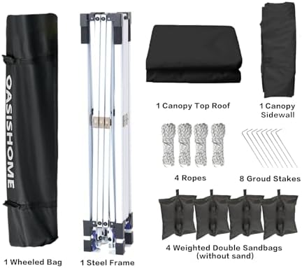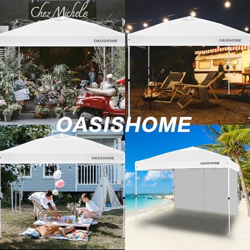 OASISHOME Pop-up Portable Outdoor Canopy Tent 10'x10' Instant Gazebo, with 1 Sidewall, Carry Bag, Stakes, Ropes, for Outdoor/Beach/Patio/Wedding Parties and Commercial Events