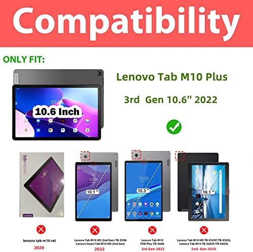 Compatible with Lenovo Tab M10 Plus 3rd Gen 10.6 inch Tablet, Not compatible with any other devices. Full-Body Protection : Case for Lenovo Tab M10 Plus 3rd Gen 10.6 inch Tablet is made of shock-absorbing Non-toxic silicone material, protect your tablet from accidental drops, bumps and shock. PREMIUM QUALITY : Made of Ultra Slim Soft Silicon for comfortable sense of touch and durable purpose while provides ultimate protection. dense silicone case fully covers the back, sides and extend the surface of your tablet offering a better protection in daily usage and easy worry about dropping or screen crack. Stand Cover : Triple-fold design is super convenient for providing different viewing angles when watching vedios, texting, gaming or learning etc. Customer Service-If you have any questions with this Lenovo Tab M10 Plus 3rd Gen 10.6 inch case, please contact us via Amazon message system. We will reply you within 24 hours and giving you a satisfactory answer.