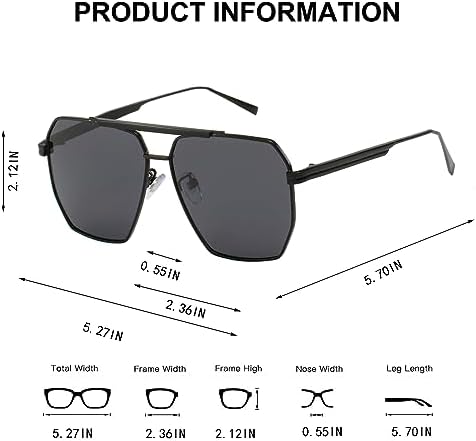 VINTAGE DESIGN - The fashion sunglasses features a flat top and double nose bridge design, not only is the oversized and square design makes slim frame looks very delicately, but also the aviator shape makes the overall look of the sunglasses more retro. With the super classic aviator shaped frame and square lenses, take a sense of high retro fashion on any occasion. HIGH QUALITY - The retro oversized aviator sunglasses are made of lightweight metal frame, thick but slim, not easily deformed, long wear does not press nose give you a unique and comfortable wearing experience. UV400 TAC POLARIZED LENSES - High definition UV400 polarized lenses effectively filters & blocks glares.Keep your eyes healthy and gives you a natural & clear vision, durable & shatterproof. SUITABLE - Perfect choice for outdoor activities such as walking, driving, shopping, travelling, taking photos, and is suitable as high fashion accessory and daily wear all year round. BUTABY's Motto - At BUTABY,our motto is that no need to pay a fortune to get a perfect pair of sunglasses.We are glad to have achieved balance between Quality, Fashion and Price. #80,615 in Clothing, Shoes & Jewelry ( ) #393 in #802 in