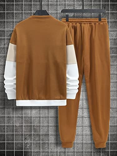 GORGLITTER Men's 2 Piece Outfits Color Block Graphic Thermal Lined Sweatshirt and Sweatpants Tracksuit Set