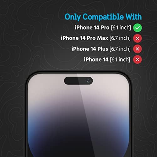 Ultra Screen Protection: Protect your iPhone 14 Pro display with Pelican's ultra heavy-duty screen protector, made of 9H rated double glass film with a matte finish, provides unmatched 4X shatter resistance from any unexpected drops or impacts; Additionally, it provides flawless coverage to prevent crack or damage on displays Natural & High Transparency: Features a crystal clear resolution for realistic media viewing and improved gaming experience, displaying the best visuals possible on the iPhone 14 Pro; Combined layers of premium anti-fingerprint and anti-scratch coatings to protect the display against finger sweat, smudge, nail marks, skin oil residue, or accidental scratch marks and keeps it spotless Smooth Touch Feel: This iPhone 14 Pro screen protector's edge-to-edge design with thin glass film support high frequency & sensitive touch response, face ID, 3D touch, and protects the dynamic island; It is made with thin black edges to perfectly blend into the phone screen Easiest Installation: Pelican screen cover comes with an easy installation kit and reinforced silicone bumpers ensure a tight seal and bubble-free installation with no air or dust; Precise laser-cutout of tempered glass fits almost every type of phone case perfectly Package Contents: 1 unit of Pelican Apple iPhone 14 Pro Screen Protector - Matte Finish (fits New Apple iPhone 14 Pro 2022 only); Lifetime Warranty