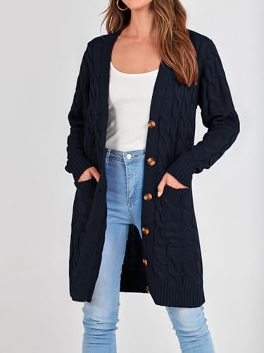 Material:Made of soft and lightweight knit fabric, this long sweaters for women is the perfect addition to your fall and winter wardrobe.Stay cozy and stylish with our womens sweaters cardigan. S=US 4-6, M=US 8-10, L=US 12-14, XL=US 16. Features:Long cardigans for women,chunky cardigans for women,sweater coats for women long,womens cardigan sweaters with pockets,cable knit cardigan women,fall cardigans for women 2023,button down sweater cardigan,open front cardigans,womens winter cardigan,open front outerwear,chunky knitwear Design:With open front design and button-down closure,this long cardigan sweaters for women offers a versatile and effortless look that can be easily dressed up or down for any occasion.It features two side pockets, providing a convenient place to store your essentials. Easy Match:This chunky cardigan is a must-have for fall and winter.Its lightweight yet warm construction makes it perfect for layering and adding a touch of cozy sophistication to any outfit.Dress it up with a pair of jeans or wear it over a dress for a more refined look. Occasions:This casual style long sleeve cardigan allows to create various looks for different occasions. Whether you're attending a casual gathering or a special event, this long sweater cardigan is your go-to outerwear. #54,127 in Clothing, Shoes & Jewelry ( ) #350 in