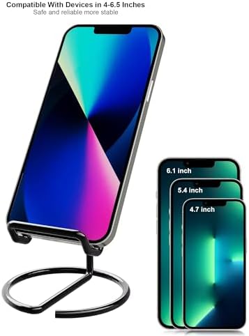 Wide Compatibility: This cell phone stand is compatible with all 4-6.5 inches smartphones in phone cases, like iPhone 14, 14 Pro,iPhone 13 Mini, iPhone 13, iPhone 13 Pro,12, 11 Pro XS XR. Unique Design: This phone stand for desk has excellent stability and play a good role in your office, kitchen, nightstand, dining table. No bent & tangling & tip over worries when using while charging. Sturdy & High Appearance: The cell phone holder is made of premium metal,it stays firmly in place,hold your phone steadily,no worry any wobble at all. Ergonomic Viewing Angle: The phone stand holder is in accordance with ergonomic design. Providing you comfortable viewing angle which helps to fix your posture and reduce neck & back strain. Service Satisfaction: If you are not satisfied with our Cell Phone Stand Holder, please feel free to contact us, we will reply within 24 hours and provide you with a satisfactory solution.