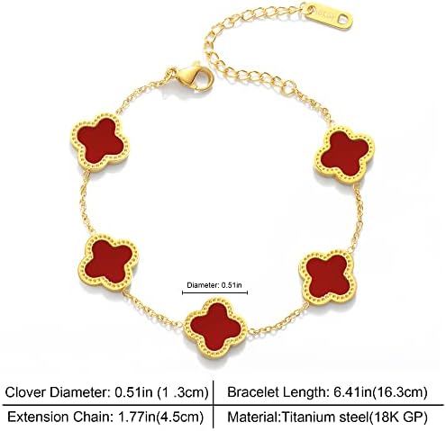 ♣.《Idea》: Legend four-leaf clover symbolizes luck, one hundred thousand beads of clover can only find a four-leaf clover, four leaves respectively represent true love, health, reputation, wealth! ♣.《Product size》: The Clover Bracelet is 6.41 "+1.77" extension chain, adjustable extension chain design meets most wrist requirements. ♣.《Product Material》: High-quality stainless steel,anti-allergy,does not fade,Make your experience feel perfect. ♣.《Suitable for the crowd》: Nothing makes a woman happier than jewelry! Give the gift of jewelry with these stunning gold clover Bracelets for yourself or for your mother, daughter, girlfriend, wife, or friend. They are the perfect choice for birthdays, Valentine's Day, Mother's Day, or any other special occasion ♣.《After-sales service》: If there is problem with the products, you can contact us through your Amazon order interface. The after-sales team is always ready to solve the problem for you until you satisfaction.