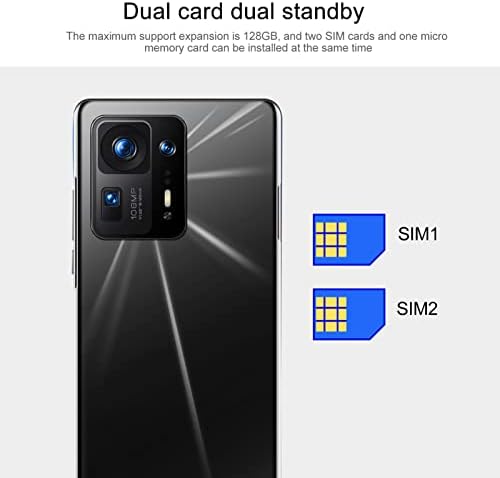 Front and Rear Camera: Front camera 48MP, f/2.0 aperture, fixed focal length, Rear camera 72MP, color, f/1.8 aperture, autofocus. 7.3 Inch Screen: The large 7.3 inch screen allows you to experience a wider field of view, showing more content in games and videos. Storage Memory: The maximum support expansion is 128GB, and two SIM cards and one micro memory card can be installed at the same time. Good Performance: Face recognition function, with WIFI, BT, FM, GPS, Type C charging port, 3.5mm standard headphone Jack. High Definition Camera: MIX4 smartphone has high definition camera, vivid colors, every photo is as beautiful as wallpaper.