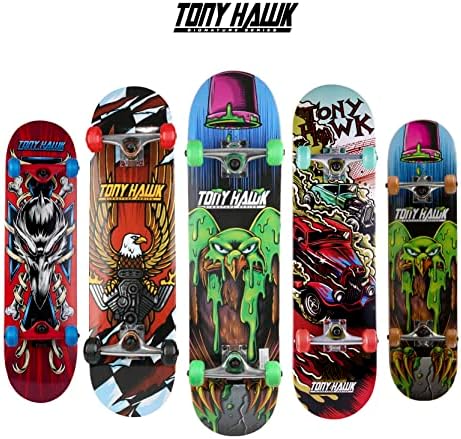 Perfect for All Riders: This 31 inch skateboard gives you just the right balance of convenience, safety, and stability. Portable and lightweight: Thanks to a sturdy wooden build coupled with the lightweight, our skateboard for cruising makes the perfect companion for your outdoor trips and travels; it's easy to carry around making it ideal for anyone that wants to skate anywhere they want Sturdy and stable build: The complete skateboard deck is made using durable and sturdy maple wood to add strength and stiffness while also gives it a stylish flair; it offers more traction for your feet and gives better control when skating Tony Hawk Signature Series: The skateboard is suitable for all skill levels and part of the Tony Hawk Signature Skateboard Series. The skateboard provides just the right fit for Cruising, Carving, Free-Style, Downhill, and more while staying stylish the super cool graphics. Thoughtful gift idea: If you're looking for a gift for family and friends that like to skate then our wooden cruising skateboard has you covered; it makes the perfect gift for Christmas, Birthdays, New Year's, Thanksgiving, and any other occasion you have in mind
