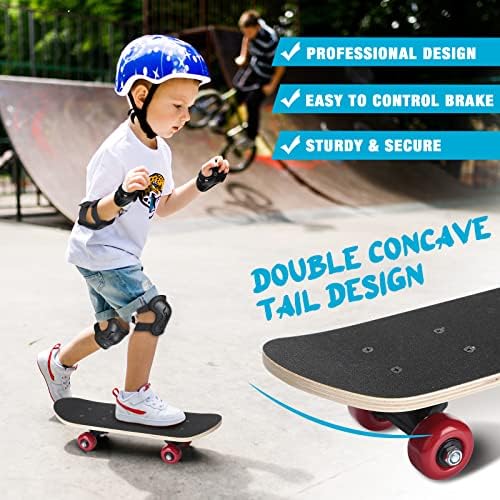 Ideal for Kids: our toddlers skateboard measures about 17 x 5 inches/ 43 x 12.5 cm, and only weigh about 1.76 lbs, with a bearing capacity of up to 33 lbs; Our bike safety gear kids include 2 pieces of knee pads, 2 pieces of elbow pads and 2 pieces of wrist guards in small size, applicable to kids Safe and Protective Gear: our protective bike gear kids are designed with adjustable elastic bands, comfortable and quick to wear, and provide good protection during sports; Its EVA foam material is light and breathable, nice for impact buffering, meanwhile making cool air flow and limiting sweat, bringing children a better use experience Reliable Material: our baby skateboard is mainly made of maple, firm and thick material, with adoption of PVC and PU wheels, reinforced with aluminium alloy post for further fixation, which can offer you with better balance control and shock absorption, nice for street and sidewalk cracks for a smooth sliding and riding experience Sweet and Distinctive Gifts: our skateboard pads and skate board for toddlers are practical, yet bringing more fun, and they are warm presents for your babies on children's Day, birthdays, Christmas, parties and other activities, and they will be very surprised and deeply touched Cool Design: our skate board for toddlers is printed with a beach pattern, adopting heat transfer printing process for long term use, waterproof without fading, no need to assemble; Our safety gear comes in classic blue and white color, making your kids dress up as a cool boy or girl when playing; They are ideal for roller skating, cycling, ice skating, rolling, ATV, BMX and other sports activities