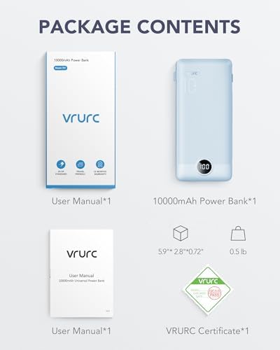 [Portable Charger With Built-in Cables & AC Wall Plug] Not only it has a built-in Micro cable, USB C cable, and other charging cable for iPhone, but also is equipped with a USB port,and USB C port. Also, Portable phone charger is built-in wall plug that charges the power bank itself directly from the wall outlet. [Slim & Compact Design] Product dimension is 5.9 x 2.8 x 0.7 in,weighing 8 Oz. Compact design is more convenient for us to carry on the go, and does not add any weight. [Smart Digital LED Display] You can know the remaining power at a glance via LED Display. Also, the 3D texture on the surface provides you with a better 3D touch and grip to prevent the power bank and phone from slipping off. [Wide Compatibility] Using the built-in charging cables to charge, the portable battery charger is compatible with iPhone, Android devices, and USB-C most mobile phones and smart devices etc. This external battery power bank can meet most of the charging needs of daily life. [PRODUCT PACKAGE] 1x Power Bank, 1x User Manual.