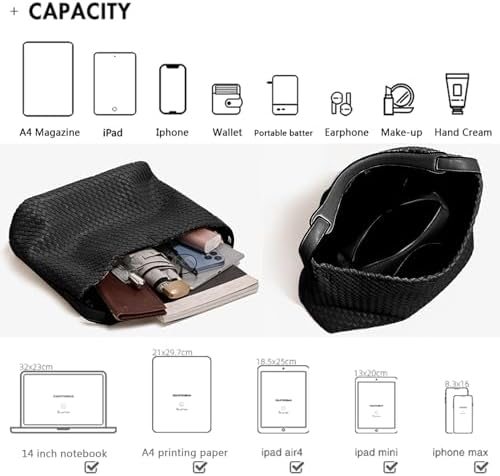【Vegan Leather Tote ! Stand The Test of Time】Our woven bag is made of high quality vegan leather instead of animal skin, No animals are harmed and it is good for the environment. simple weave elements can better reflect the advanced design style. Delicate woven detailing runs throughout the frame. it's light and practical. It is suitable for daily carry and can carry the items you need for travel. You will get 1 x handbag and 1 x clutch in your order. 【Shoulder bag dimension】Handbag size: 13.77" L x 5.51" W x 11.81" H, Handle drop: 10.23" . Clutch size: 9.44" L x 4.33" W x 7.87" H.Simple and spacious utilitarian design with a adjustable strap,removable and punching adjustment . The tote handbag can be loaded into mobile phones, earphones, power banks, cosmetics, masks, keys, folding umbrellas, water bottles and other daily carrying items. The clutch bag can hold personal items such as coins, cash, etc.to meet your different needs. 【Best of The Best Design】It can be used as a shoulder bag, handbag and crossbody bag, with a comfortable and soft handle, and its armhole is big enough to match your shoulders. Elegant and unique hand-woven texture, it is simple, stylish and effortlessly matches everything in your wardrobe. It represents the easy, laid-back, free and slow-paced life, and it is a symbol of our pursuit of a better life. 【Multiple Occasions】You can take it to work, dining at restaurants, watching movies, traveling, shopping, going on vacation, dating, beach and more.It is a good choice for everyday use. If you want to go on vacation, beach or travel then this women's shoulder handbags will be the ultimate choice for you. 【Great Gift Option】 This tote bag with metal lock catch is perfect gift for girlfriends, wife, mothers, sisters,daughter or yourself etc. Due to the influence of shooting lighting and ambient light, there is a little color difference between the picture and the eye. After adjustment, the picture is very close to the original color of the hobo bag. #114,598 in Clothing, Shoes & Jewelry ( ) #191 in