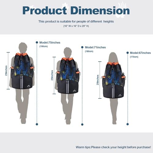 【Large Capacity & Keep Organized】- GoHimal scuba bag measured in 29”x16”x16”and equipped with multiple pockets to accommodate and organize all your scuba diving or snorkeling equipment like fins, goggles, mask, wetsuit, regulator, shoes, BCD, and more. 【Lightweight & Breathable Design】- Durable PVC coated mesh and bottom grommet allows to drain water easily and air dry quickly, ensuring that your gear stays dry and protected from potential damage caused by seawater and humidity. 【Delightful & Thoughtful Details】- Fluorescent strips making it easier for divers or their equipment to be spotted by others; adjustable chest and waist straps helps to relieve the stress of shoulder;built-in safety whistle in case of any emergency. 【Comfortable and Portable 】-This diving bag is designed in a backpack style, equipped with comfortable padded straps and back, allowing you to easily carry your gear during long-distance travels, providing a comfortable carrying experience. 【Durable and Long-lasting】- XL Scuba Diving Bag is constructed with high-quality materials, ensuring excellent durability and a long lifespan, capable of withstanding the demands of various diving and snorkeling activities.