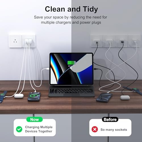 One for All: With totally 40W 4-Port designed (2*USB-C + 2*USB-A), allow users to simultaneously charge four devices. It can really save your time,best replacement for your original charger. High-Speed Charging: With QC+PD 3.0 port, offers fast and efficient charging up to 3X faster than a 5W charger. Charge your iPhone 14 up to 50% capacity in just 30 minutes with the original cable. Cable not included, only 2 Chargers. Universal Compatation: Designed for iPhone 11/12/13/14/15 Pro/12 Pro Max/iPhone 8 and later. The USB charging adapter is compatible for iPhone, iPad, iPod, smartphone, MP3 / MP4 players, play equipment, GPS devices, PC tablet, Google Nexus Tablet, Samsung Galaxy Tab and other digital devices compatible. Compact & Portable: Incredibly compact size for enhanced portability.All this power comes installed in a pocket-friendly compact body, to go wherever the journey takes you. Ideal for home, office and on the go. Safe & Reliable: Equipped with a smart chip, which can adjust the input power of the phone to prevent the phone from overcharging and overheating. What You Get: 2 X 40W 4Ports USB C Charger Block, and friendly customer services.