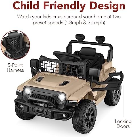 Best Choice Products 6V Kids Ride On Toy, Mini Truck, Electric Play Car w/Parent Remote Control, 4-Wheel Suspension, LED Lights, 2 Speeds, Functional Horn, 3.1MPH Max Speed - Sand