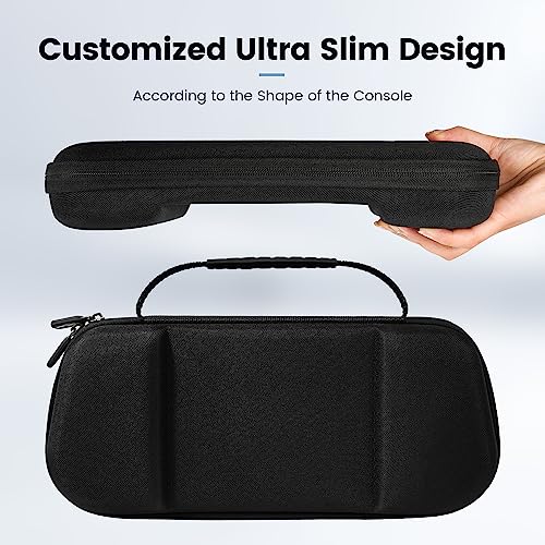 CUSTOM-DESIGNED CARRYING CASE FOR ASUS ROG ALLY-- Limited edition slim design. Fits your device with a silicone case. The coolest protection for your ASUS ROG Ally Handheld! (NOTE: ROG Ally console and other accessories not included) FULL PROTECTION -- Durable EVA hard shell and soft inner lining can protect your ROG Ally Handheld against any bumps or scratches during transport. The groove design provides enough space for the ROG Ally Handheld Joysticks, effectively protecting them from external crushing. PORTABILITY & COMFORT -- The lightweight design of the travel case and nylon handle make it convenient for carrying by hand or hanging in any location, whether at home or on the go, for comfortable portability. BUILD IN STAND- The inner cards slots board can be use as switch stand, you can enjoy the switch tabletop mode anywhere. Make going on vacation very happy, perfect fit for outdoor activities and enjoy your game with family or friends. WHAT YOU GET- A ASUS ROG Ally hard carrying bag and a cleaning cloth; Worry-free 12-month warranty, and friendly customer service. (ASUS ROG Ally and other accessories not included, for demonstration purposes only).