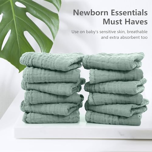 100% Cotton 100% COTTON - Made of pure natural muslin cotton. The fluffy structure of the cotton muslin fabric provides absorbs water and does not penetrate quickly effect. PACKAGE CONTENT - 12 pieces muslin burp cloths, 20 x 10 inches. They are also lightweight and breathable, making them ideal for use in any season. NEWBORN ESSENTIALS MUST HAVES - MULTI-PURPOSE ITEM FOR BABIES – our muslin cloths are so versatile and can be used in a multitude of ways. Perfect for protecting your clothing when burping little ones, wiping up sticky messes, as a breastfeeding cover up, for teething, dribbling babies or even as a changing mat cover when out and about to keep the area hygienic. PREMIUM QUALITY BABY STUFF - SWEET DOLPHIN muslin cloths will be your favorite daily essentials as reusable baby wipes, cloth diapers, baby face towels, body washcloths, facial cloths and anything else that's available. An ideal size to pop into a handbag or changing bag and can be used all around the home as they come in super handy when feeding, changing or even cleaning baby. PERFECT BABY SHOWER GIFT - Top of the baby registry items, this is an essential item for new parents, the more the merrier where burp cloths are concerned! Our burp cloths are highly absorbent, durable, and machine-washable, ensuring that they can handle all of your baby's messes and last through multiple washes.
