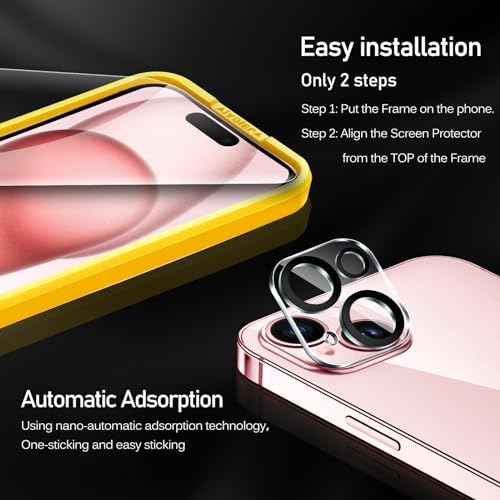 iVoler Screen Protector compatible for iPhone 15 6.1inch 2023, NOT fit for other model. Please check your phone model before purchasing. Before installation, please watch our installation guide and use the Alignment frame to ensure the screen protector installed better, making you have a better using experience. Anti-Fingerprint : The surface of the protective film is treated with Anti-Fingerprint Coating and a plasma oleophobic coating, which is very smooth, effectively prevent fingerprints from sweat and oily smudges, making the screen very easy to clean, helping you get rid of some annoying things in daily use. AR technology & Night shooting function: The glittering rear camera lens protector are featured with augmented reality "seamless" fusion new technology, with enhanced light transmission function, no need to design the flash hole position, even if the flash is turned on at night , it can be 99.99 % Guarantee the original quality of photos and videos. Ultra-Clear & High-Definition :iVoler screen protector is made with high transparent featured which maintaining 99.99% response sensitivity and 99.99% optical-grade light transmittance, effectively blocking and filtering ultraviolet rays, and enhancing the visibility of the screen. Include: 3x Screen protector, 3x Camera Lens Protector,1x Alignment Frame. Edge to edge full screen protector protection, so that the edge of the phone screen is not easily damaged, and provides comprehensive protection for your phone. If you have any questions, you can contact us directly, we will offer you a suitable solution within 1 business day !