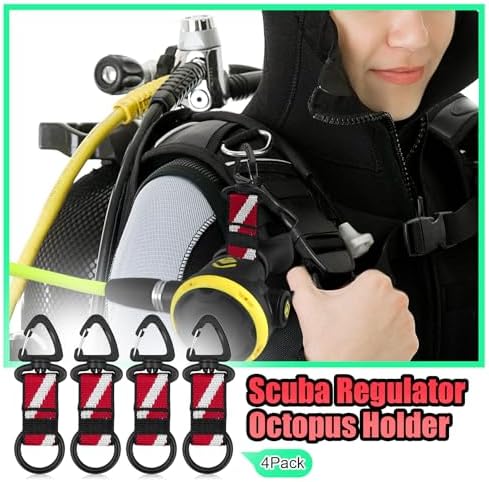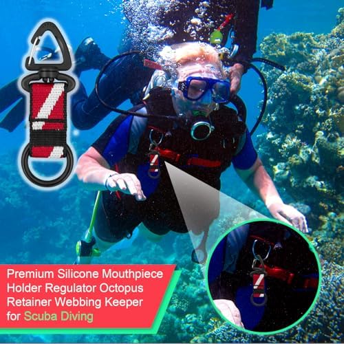 OVOVFANY 4Pack Scuba Octopus Holder, Silicone Dive Octo Mouthpiece Keeper 2nd Stage Regulator Retainer with Spring Clip and Dive-Down Flag Band Strap for Underwater Diving