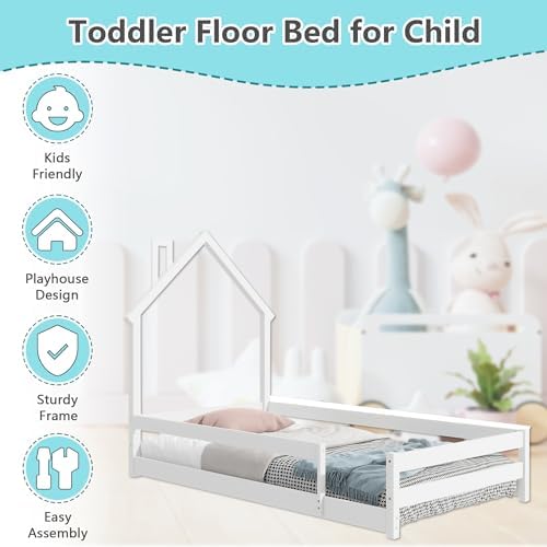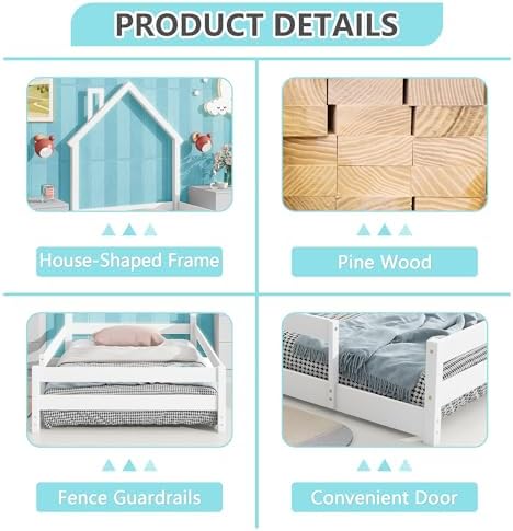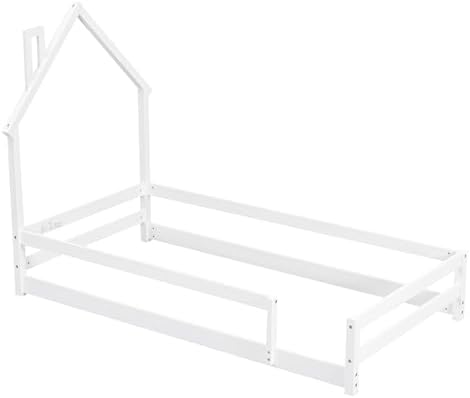80% Pine Wood [House-Style Headboard]: The house-style headboard features the house-roof frame structure to make feel at home. This intelligent design adds to a jolly good idea of the imagination and exploring. [Bed Platform with Guardrails Design]: bed platform with full-length guardrails not only provides better fun and joy, but also reduce any concerns about the safety. The guardrails around the bed are designed to have an opening to made easy to get in and out of the bed platform. [Quality and Safety Guaranteed]: This twin size bed is crafted mainly from quality pine wood , providing lasting sturdiness and durability. The twin bed is constructed with firmly secured compartments, forging solid stability that ensures relaxing bedtime experience and soothing nights. [Stylistic Elements]: A twin size mattress (Not included) can be laid down within the bed frame to ensure the security and safety protection. The headboard combines the house-style structure with bed sleeping function. Moreover, there are a variety of classic colours that you can choose, from which you believe suits your bedroom the best. [Easy Assembly]: The twin bed is delivered in one individual package, along with an installation manual and full set of hardware necessary to guide you through the process of assembly, and each bed will be smoothly assembled while following the manual instruction step by step.