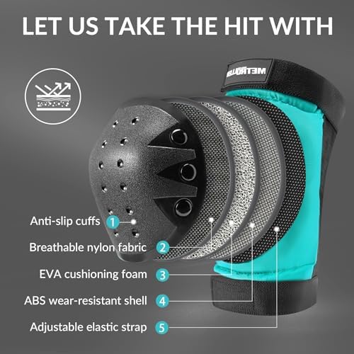 STURDY & PROTACTIVE MATERIAL Made of sturdy, soft EVA padding and tough plastic sheeting, with longer and larger pads and multiple layers of protection to ensure safety during sports and games. EASY TO CARRY The 6-in-1 protective set includes knee pads, elbow pads, and wrist guards. The protective gear set can be carried in a mesh bag when playing sports indoors or outdoors. It can be taken anywhere due to the lightweight and convenience. TWO WAYS TO WEAR Adjustable Velcro and elastic bands provide two ways of wearing. Direct binding for strong people or for summer when wearing short sleeves and shorts.Sleeves + straps. Suitable for thin people or wear long sleeves and pants. FIT FOR MULTIPLE SPORTING The protective gear set can be used with roller skating, skateboarding, cycling, scooter and various action outdoor sports to provide you with protection. To prevent the protective gear from falling off and shifting during exercise, please make sure that each part is worn correctly. COMFORTABLE AND BREATHABLE Double-sided twill elastic is adjustable for secure comfort at the knees, elbows and wrists. And breathable fabric keeps them dry and fresh and reduces sweating during hours of skating.