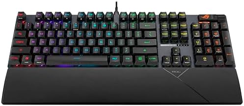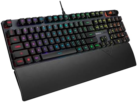 ROG RX optical switches: Pre-lubed RX switches feature centralized lighting and provide consistent wobble-free keystrokes with near-zero debounce delay IP57-rated: Waterproof and dust resistant for long-lasting durability Hotkeys: F1–F5 keys are pre-programmed as hotkeys for Xbox Game Bar and recording Intuitive controls: Multifunction button and three-way knob for media playback, volume, and keyboard lighting Sound-dampening foam: Integrated foam absorbs pinging noises and echoes for improved acoustics