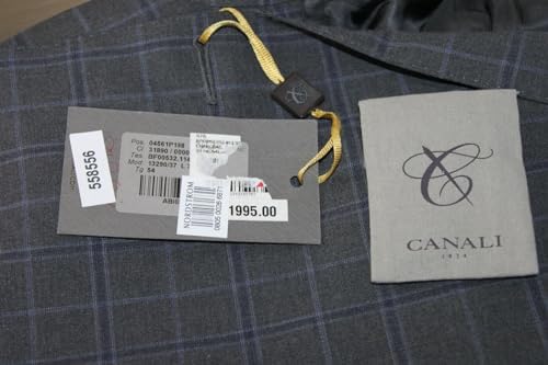 Double Vent Luxury Suit MSRP $1995 High-quality soft, natural comfort wool defines a stylish Italian suit featuring flat front trousers paired with a two-button, notched-lapel jacket. Model: L13290/37 Charcoal Size: 54 Long Considered a Classic fit; cut with extra room through the chest and body for comfort. 100% wool; Dry Clean; Made in Italy; Pick Stiching Details: Jacket: Has four-button cuffs; chest pocket; flap pockets; interior pockets; side-vents; lined. Trousers: Zip fly with button-tab closure; slant pockets; back button-welt pockets; lined to the knee. Measurements: Jacket: Length 303/4"; Shoulder 193/4"; Chest 223/4"; Sleeves 26"- 2" to let out Trousers: Waist 37"; Inseam 37; Thigh 121/2" dia; Length Opening 81/4"; Front rise 11"; Back rise 17"
