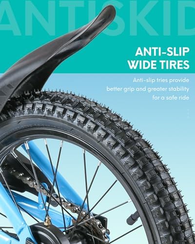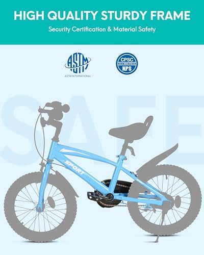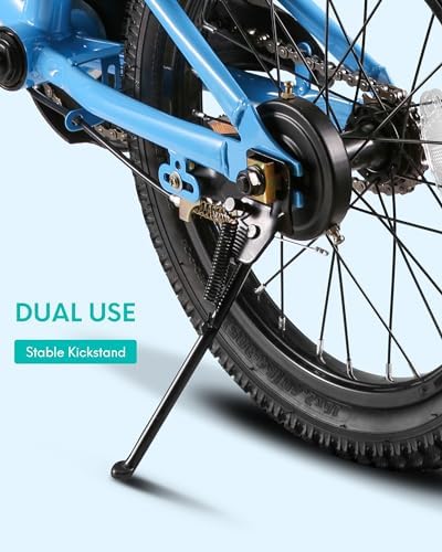 【Design for Kids 】1. This 16 inches kids bike comes with stable training wheel early. 2.Quick release seat simplify the height adjustment. 3.Saddle with holder to learn riding when the training wheel is off. 4.Foot brake suitable for young rider don't have enough power to manipulate the hand brake. 【Safe for Kids】Our kids bike bell around the handle and reflectors in many places, making it easy to drive during the day and at night. Detachable training wheels allow your child to ride a bicycle smoothly from beginner to being able to ride. Fully-enclosed Chain, effectively prevent clothing and other things involved in the chain resulting in child injury. 【Minimum Maintenance 】Made of premium steel to survive the bumps of learning, the durable steel frame is backed by our limited lifetime warranty. The kids bike comes with black tire & single speed, only little maintenance needed due to the simple design. 【Easy to Install】The 16" kids bike comes with 85% Pre-assembled body and the basic assembly tools, only pump needed for tire, normally takes a novice about 20 minutes to assemble the bike. If you have problem about assembly the bike, please contact us. 【Ideal Gift Choice】The kids bike with training wheels is perfect for beginner riders 41"-46" tall. Helping boys and girls age 4 to 10 years old learn to ride with confidence and fun.