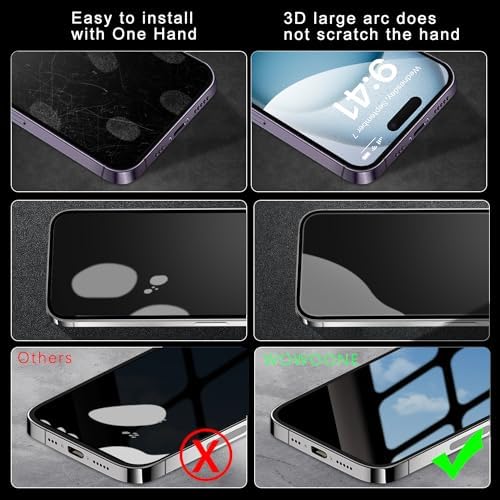 ? Why Choose Our iPhone 15 Screen Protector? Screen protector has an unique anti-static coating function design,can reduce the generation and impact of static electricity to a certain extent. Avoid the impact of static electricity on your phone. Also enhance the scratch-resistance and anti-fold strength of your phone screen.Effectively protecting your phone screen from being scratched or broken.With this screen protector can protect your precious phone! ? Packaging & Perfect After-Sales - You will get 3 Pack*glass screen protector + 3pcs*Cleaning Wipes(Dry) +3*Cleaning Wipes(Wet) +3 dust removal stickers.Screen protector compatible with iPhone 15 6.1 inch display screen protector.If you have any questions about screen protector tempered glass,please free to contact us. We will reply to you as soon as possible to help you solve it. ? High Hardness & Scratch-Resistant & Shockproof & Anti-Fingerprint & Impact Resistant - Screen protector -1.High quality 9H high hardness screen protector,15X stronger stronger than traditional screen protection.Defend shattered edges,explosion,against drops,dings and scratches.2.Hydrophobic and oleophobic coating effectively prevents fingerprints, dust, oil,smudges, and watermark from gathering on the screen.Offers you a clean and clear screen environment.3.Rounded edge design,An arc exceeding 120°,Touch smooth.Won't scratch your hands.4.Can Bending:210°,With maximum protection. ? Touchscreen Sensitive & Ultra HD Clarity & Care for Your Eyes - Screen protector 0.33mm ultra-thin screen protector makes you true touch sensitivity and ensures accurate and work quick typing,smooth game and video playing.maintaining the same responsiveness,original ultra HD picture quality and touch experience as a naked phone.Transmittance rate over 99.99% optical grade transparency.Even after hours of video or gaming consumption, without eyestrain or blurry vision. Your eyes are always protected!Perfect experience make you to enjoy the process of playing with your phone! ? Easy to install & Save Time & Save Energy - Iphone 15 tempered glass screen protector 30-second installation process.Just remove dust and align it properly before installation advanced silicone adhesive,no residue when removing no worrying about bubbles. iPhone 15 protective film keep your phone looking new no matter how long you use it!