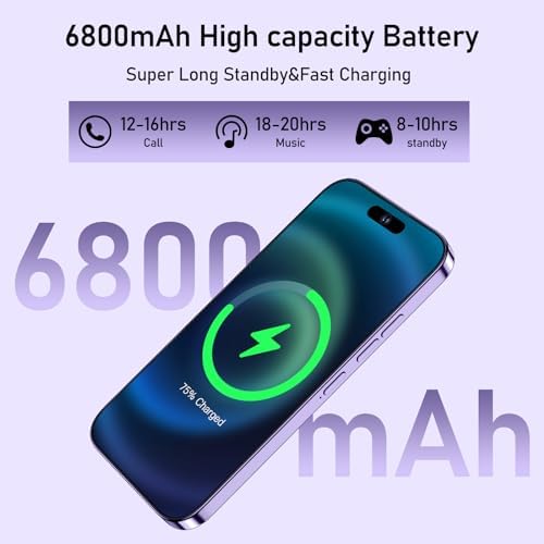 WV LeisureMaster A15 Pro Max Cell Phone,8GB+512GB Ultra Memory Unlocked Phone,Android 13.0 Smartphone,6800 mAh Battey,6.82-inch HD Screen,Dual SIM, Dual Standby,108MP Camera, 5G Phone.(Purple)