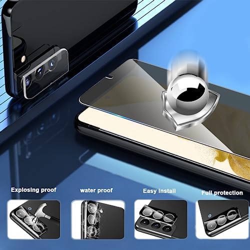 ?【Privacy Tempered Film】: The privacy tempered film blocks out 99% of visible light, preventing onlookers from seeing your screen from various angles. ?【Camera Lens Tempered Glass】: The 2 pack of camera lens tempered glass is specially designed to protect your device's rear camera lens from dust, dirt, and scratches. ?【High Clarity】: This Privacy Screen Protector has high clarity and is bubble free, so you can still enjoy a crystal clear view. ?【Anti-Spy Protection】: The anti-spy protection also works to prevent identity theft and helps protect your online banking and other sensitive information. ?【Compatibility】: This Privacy Screen Protector is compatible with Samsung Galaxy S22 5G.If you have questions about installation, please contact us promptly.