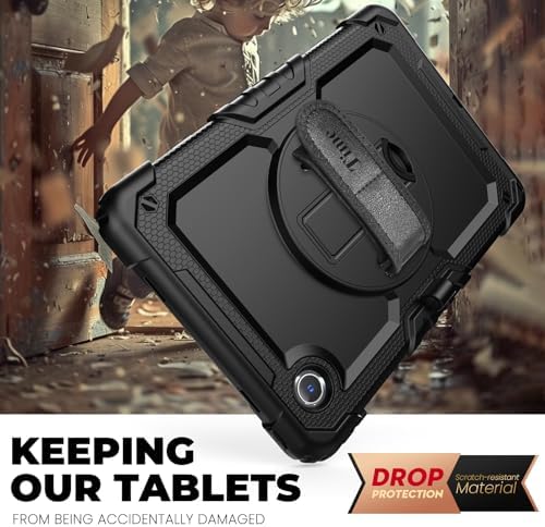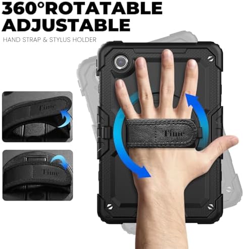 timecity for Lenovo Tab M11 Case 11 Inch (TB330FU/TB330XU), Lenovo m11 Tablet case with Screen Protector / 360 Rotating Hand Strap/Stand, 3-Layer Protective- Black