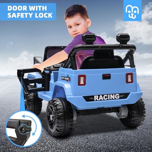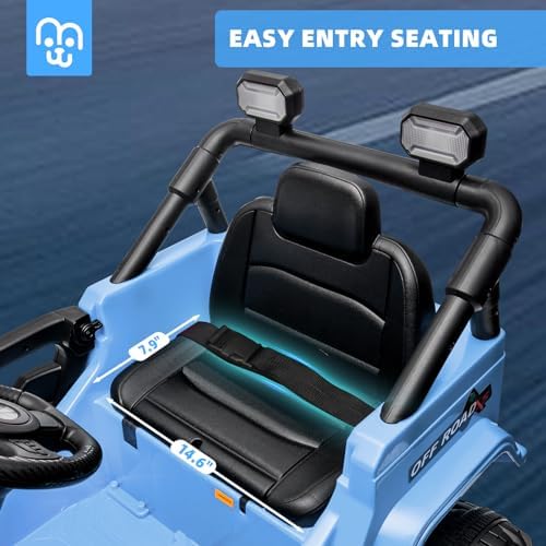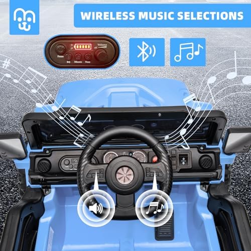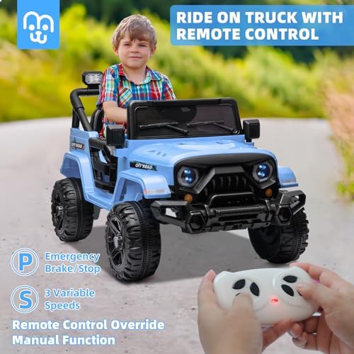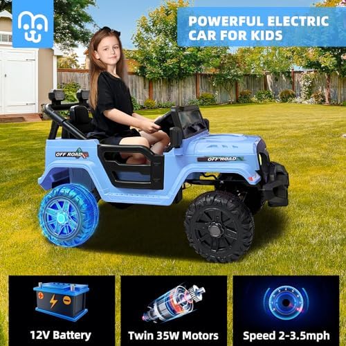 12V Kids Ride on Truck Car Remote Control, Twin 35W Motors 3.5MPH Max Speed, Bluetooth USB Music Player, 4 Wheels Suspension LED Lights Safety Belt, Electric Car Gift for Boys & Girls-Blue