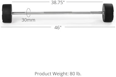 WEIGHT TRAINING PERFORMANCE: Ideal for a range of weightlifting exercises such as bench presses, squat racks, and deadlifts, this Rubber Coated Fixed EZ Curl Barbell is engineered to endure rigorous workouts while delivering enduring performance. KNURLED GRIP: This fixed barbell is crafted with dual knurled grips on each side, featuring a single knurl mark for enhanced comfort, ensuring a secure and consistent grip throughout your workouts. VERSATILE WEIGHT OPTIONS: Offering weight selections ranging from 20 LB to 110 LB, this Fixed EZ Curl Barbell empowers personalized workouts, catering to individuals of all levels, from novices to seasoned weightlifters. Achieve progress at your own comfortable pace. DURABLE CONSTRUCTION: The fixed barbell is crafted from curved, cold-rolled steel with a hard-chrome finish. It is equipped with pre-loaded rubber weights at both ends, ensuring durability and safeguarding the gym floor. DIMENSIONS: The 20 LB EZ Curl Fixed Barbell measures 41" in width and features a grip width of 38.75" with a 30mm diameter.