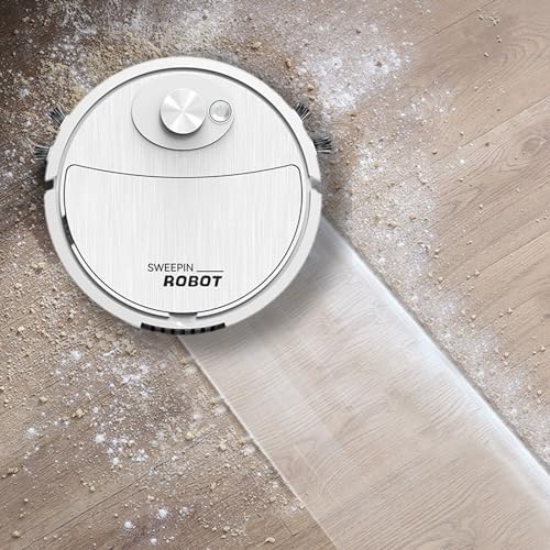 Robot Vacuum Cleaner,Vacuum Robotic Cleaner with Mop and Broom,2 in 1 Strong Suction Mopping Robot with Dustbin,Ideal Robot Vacuum for Hard Floor,Pet Hair,Carpet (WH)